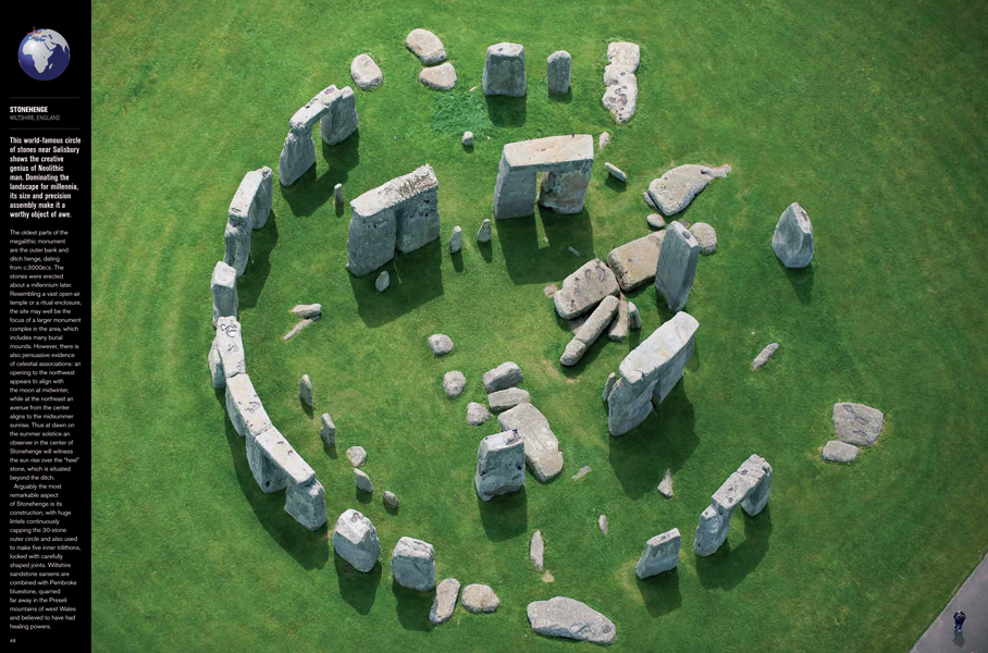 Durante miles de años la humanidad ha creado estructuras notables en casi todos los rincones del mundo. Algunos celebran los misterios del universo, conmemoran grandes hombres o glorifican a los dioses, mientras que otros ayudan a proteger los territorios, facilitan el comercio, proporcionan refugio confortable o son lugares para el entretenimiento. Este libro invita a un viaje de descubrimiento por los lugares más sorprendentes de nuestro planeta como la Alhambra de Granada, Machu Picchu en Perú o la gran pirámide de Egipto... Un espectáculo deslumbrante, sin efectos especiales en honor del patrimonio natural de nuestro planeta.