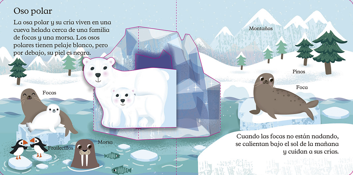 ¡Una sorpresa en cada página! Con hermosas ilustraciones de Amanda Enright, este libro para niños pequeños, con pop-ups y solapas les introducirá en el hábitat ártíco y de los animales que viven allí.
