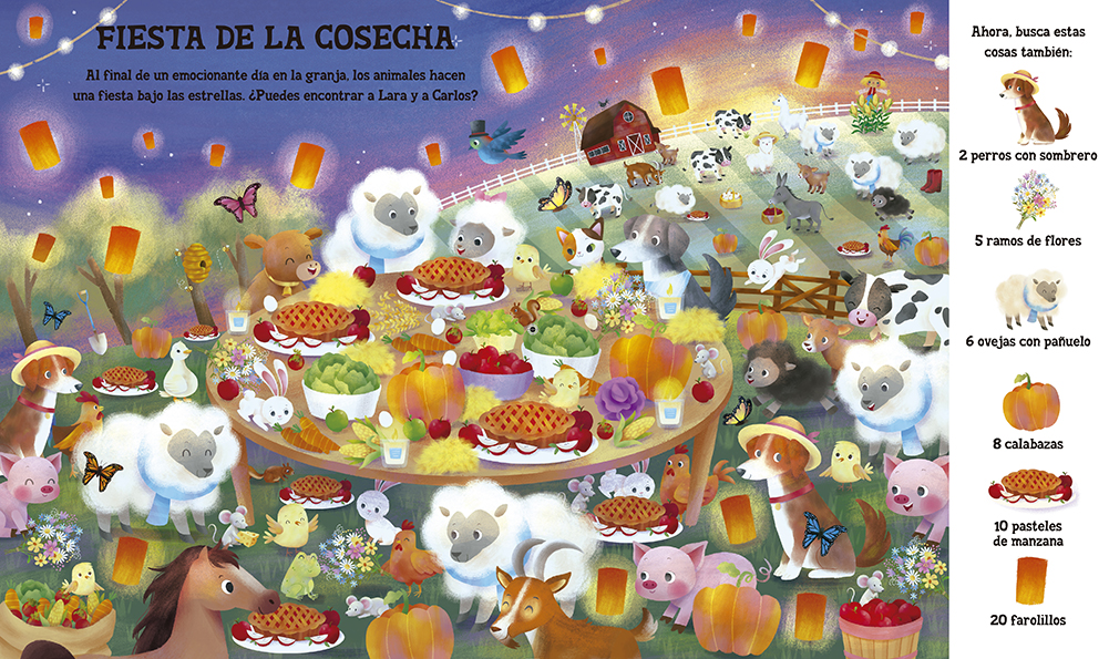 ¡El ternero Carlos y la oveja Lara están listos para explorar! Búscalos por toda la gran j a y descubre muchas otras cosas más. Hay 501 elementos para encontrar, desde cabras hasta gafas de sol. ¿Puedes enc ontrarlos?