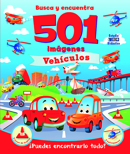 Desde camiones y trenes, a coches y grúas, este increíble libro está lleno de vehículos que te divertirán mientras buscas y encuentras. Descubre temerosas motos de acrobacia en un cañón gigante, encuentra barcos que van a mucha velocidad en el océano, o coches en un autocine, y mucho, mucho más. Perfecto para niños y niñas que les gustan los vehículos a motor. Este libro es ideal para divertir y entretener durante horas y horas.