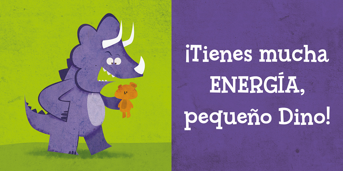 ¡Tienes mucha energía, pequeño Dino! Pero ten cuidado de no pegar. Usa tus manos para ayudar.