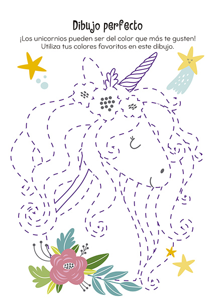 Conoce unicornios y otras criaturas mágicas mientras te entretienes con los rompecabezas, uniendo puntos, buscando las diferencias, coloreando y con actividades muy creativas en este divertido bloc.