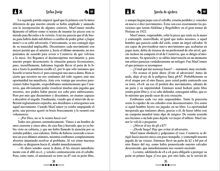 Novela de ajedrez narra la historia de un encuentro en un transatlántico entre el campeón mundial de ajedrez, y un noble vienés que sobrevivió a los nazis gracias a jugar al ajedrez de manera obsesiva. La novela es una crítica al nazismo. Veinticuatro horas en la vida de una mujer trata sobre una señora que, tras un viaje a la Riviera, abandona su vida burguesa para huir con un joven, y su relato de esa jornada que cambia su vida. Carta de una desconocida es la historia de una mujer que escribe una carta a su amor platónico, a quien conoció cuando era una niña y el que nunca supo de su existencia.