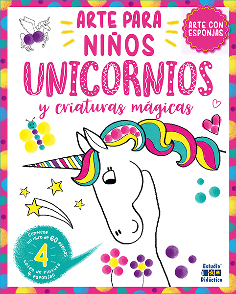 Descubre una manera fácil de crear páginas de arte mágico. Con cuatro esponjas, cuatro botes de pintura y un fabuloso bloc que incluye una guía para hacer muchas criaturas mágicas. Esta caja tiene todo lo que necesitas para divertirte jugando.