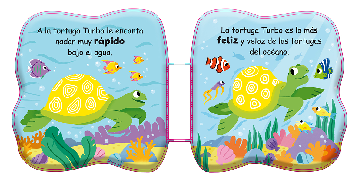 La tortuga Turbo se divierte nadando en el mar. Este libro, impermeable y con sonido, es perfecto para la hora del baño, ¡así que vamos a divertirnos!