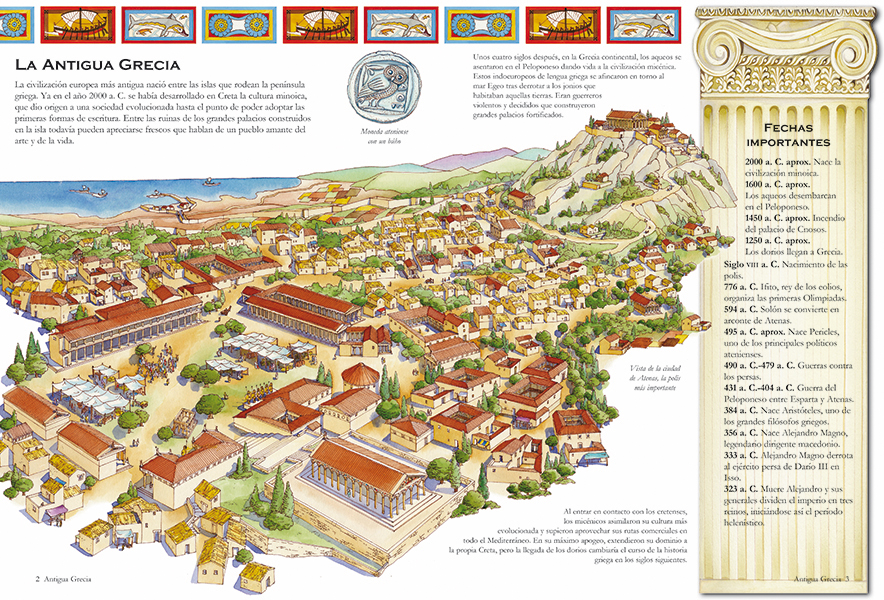 La filosofía, la arquitectura, el comercio, la navegación, las guerras, el teatro y más. Descubra la Antigua Grecia viajando en nuestra máquina del tiempo.