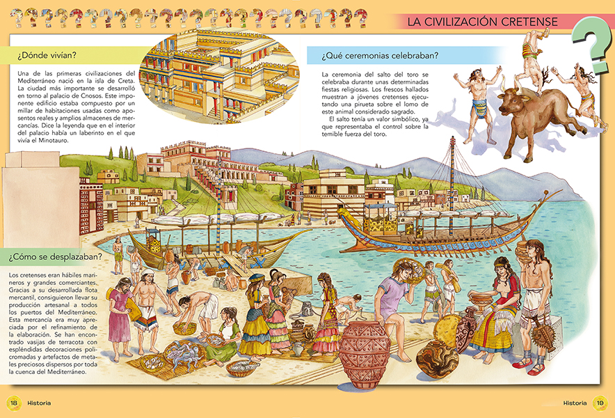 El presente libro consta de dos títulos: Preguntas y respuestas de la historia y Preguntas y respuestas de ciencia y naturaleza. ¿Quién descubrió el fuego? ¿Qué era la filosofía? ¿Quién era Julio César? ¿Quiénes eran los celtas? ¿Quién construyó el Taj Mahal? ¿Quién inventó la máquina de vapor? ¿Qué son las algas? ¿Qué es la clorofila? ¿Cuánto vivieron los dinosaurios? ¿Cómo respiran los peces? ¿Cómo funciona el corazón? ¿Cómo se forma un valle? De forma clara y amena da respuesta a las preguntas, con ilustraciones a todo color y con un lenguaje fácil, los niños aprenderán sin esfuerzo, despertando su curiosidad.