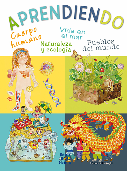 El presente libro contiene los siguientes contenidos: Cuerpo humano, Naturaleza y ecología, Vida en el mar y Pueblos del mundo. En el título del Cuerpo humano, los niños aprenderán a identificar las diferentes partes del cuerpo, sus funciones, los sentidos, la salud, el embarazo y nacimiento, etc. En el libro Naturaleza y ecología los niños aprenderán la vida y partes de las plantas, sus hojas, flores, semillas, los diferentes ecosistemas que existen, desiertos, selvas, bosques, etc. En el título Vida en el mar los niños aprenderán la importancia del mar, cómo es y qué hay en el fondo del mar, en los corales, conocerán cómo se forman las olas y las mareas, etc. En el libro Pueblos del mundo los niños aprenderán que existen diferentes culturas a las suyas y que el respeto y la tolerancia son necesarios para convivir en la sociedad actual.