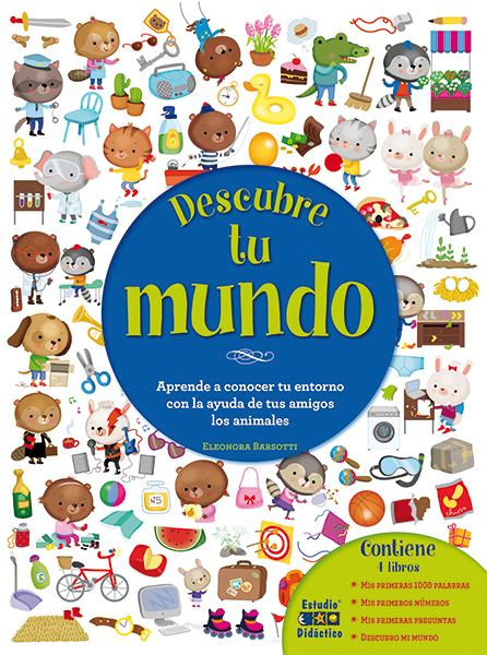 Descubre tu entorno con la ayuda de tus amigos los animales. Contiene: Mis primeras 1000 palabras, Mis primeros números, Mis primeras preguntas y Descubro mi mundo. ¡Miles de imágenes para aprender!