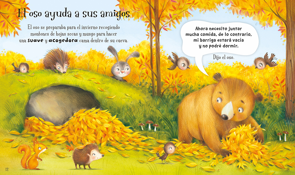 Entra en el maravilloso mundo animal con esta encantadora colección de cuentos de cinco minutos. Conoce a un pequeño león que practica su rugido, acompaña al oso mientras ayuda a sus amigos, descubre si el pequeño búho se atreverá a volar, y mucho, mucho más. Títulos de la colección: Lleno de hermosas ilustraciones de animales grandes y pequeños; historias que harán disfrutar a los más pequeños.