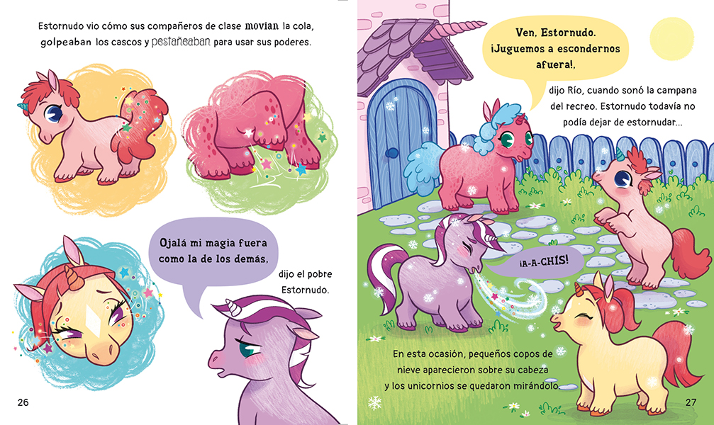 Disfruta de un cuento cada noche de la semana con esta adorable selección de Cuentos de unicornios. Observa a unicornios que viajan en el tiempo a la Era de los dinosaurios; aprende lo que son los Lagocornios; asómbrate al ver estornudar nieve, y mucho más. Con siete hermosas historias, los pequeños se divertirán con esta entretenida colección.