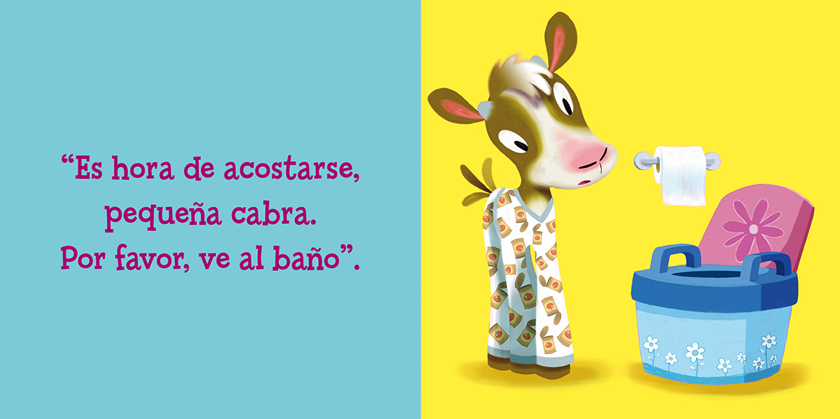 "Es hora de acostarse, pequeña cabra. Por favor, ponte tu pijama".